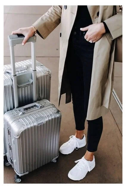I don’t know about you, but I have a pretty standard uniform that I wear when I travel. The elements can vary slightly, depending on the destination, but the one consistent aspect is stylish comfort. My uniform starts with a pair of my favorite joggers or jeans, a lightweight sweater or white tee shirt and a jacket ( or my favorite black cashmere blazer), or cardigan, and comfortable shoes. Usually lightweight tennis shoes. Everything I wear gets utilized again , especially the shoes and jacket. There is an age old rule that always goes through my head and that is to wear your heaviest jacket or sweater and your heaviest shoes. I still use that rule, especially when traveling in the winter and boots are involved. It makes for much easier packing. And lastly, I always bring a cashmere wrap/scarf in my carry on. Plane temperatures vary and it’s nice to have that extra layer, sometimes it’s just the comfort of having it on your lap. Plus, it will come in handy on cooler evenings while you’re traveling.
